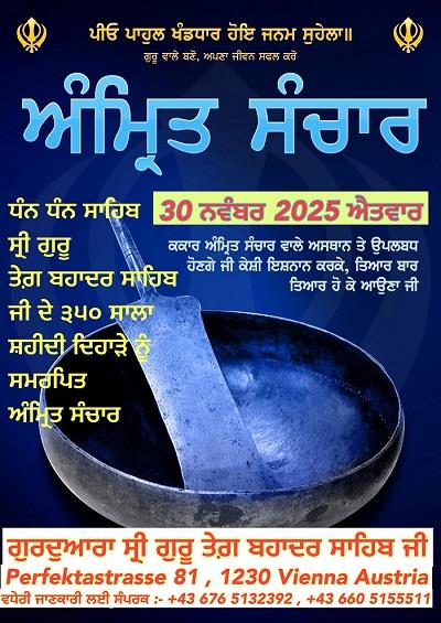 ਆਸਟਰੀਆ ਦੇ ਵਿਆਨਾ ਸ਼ਹਿਰ ਵਿੱਚ ਕਾਬਲ ਦੀਆਂ ਸਿੱਖ ਸੰਗਤਾਂ ਕਰਵਾ ਰਹੀਆਂ ਹਨ ਅੰਮ੍ਰਿਤ ਸੰਚਾਰ 30 ਨਵੰਬਰ ਦਿਨ ਐਤਵਾਰ ਨੂੰ