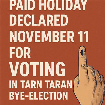 ਤਰਨ ਤਾਰਨ ਜ਼ਿਮਨੀ ਚੋਣ 'ਚ ਵੋਟ ਪਾਉਣ ਲਈ 11 ਨਵੰਬਰ ਨੂੰ ਤਨਖਾਹ ਵਾਲੀ ਛੁੱਟੀ ਘੋਸ਼ਿਤ
