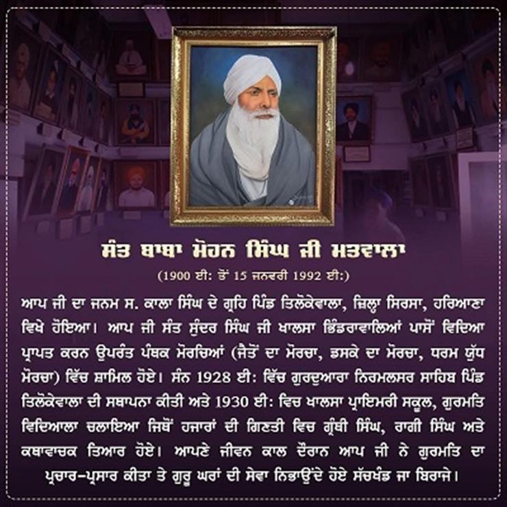 ਸਿੱਖ ਪੰਥ ਨੇ ਸ਼ਹਾਦਤਾਂ ਦੇ ਕੇ ਇਤਿਹਾਸਿਕ ਗੁਰਦੁਆਰੇ ਮਹੰਤਾਂ ਤੋਂ ਆਜ਼ਾਦ ਕਰਵਾਏ ਅਤੇ ਚੰਗੇ ਪ੍ਰਬੰਧ ਲਈ ਸ਼੍ਰੋਮਣੀ ਗੁਰਦੁਆਰਾ ਪ੍ਰਬੰਧਕ ਕਮੇਟੀ ਦੀ ਸਥਾਪਨਾ ਕੀਤੀ ਸੀ ਸ਼੍ਰੋਮਣੀ ਕਮੇਟੀ ਦੇ ਚੁਣੇ ਪ੍ਰਬੰਧਕ ਗੁਰਦੁਆਰਿਆਂ ਦੇ ਮਾਲਕ ਨਹੀਂ ਕੇਅਰ ਟੇਕਰ ਸੇਵਾਦਾਰ ਹੁੰਦੇ ਹਨ ਉਨਾਂ ਦੀ ਜਿੰਮੇਵਾਰੀ ਬਣਦੀ ਹੈ ਕੇ ਇਤਿਹਾਸਿਕ ਗੁਰਦੁਆਰਿਆਂ ਦੇ ਚੰਗੇ ਪ੍ਰਬੰਧ ਦੇ ਨਾਲ ਨਾਲ ਧਰਮ ਪ੍ਰਚਾਰ ਪ੍ਰਸਾਰ ਕੀਤਾ ਜਾਵੇ ਸ਼੍ਰੋਮਣੀ ਕਮੇਟੀ ਪ੍ਰਬੰਧ ਹੇਠ ਆਉਂਦੇ ਅਦਾਰਿਆਂ ਵਿੱਚ ਝੂਠ ਪਰੋਸਣਾ ਸ਼ੁਰੂ ਕਰ ਦੇਵੇ ਤਾਂ ਆਉਣ ਵਾਲੀ ਪੀੜੀ ਲਈ ਦੁਬਿਧਾ ਖੜੀ ਹੋ ਜਾਵੇਗੀ ਇਨਾਂ ਵਿਚਾਰਾਂ ਦਾ ਪ੍ਰਗਟਾਵਾ ਜਥੇਦਾਰ ਬਲਜੀਤ ਸਿੰਘ ਦਾਦੂਵਾਲ ਜੀ ਚੇਅਰਮੈਨ ਧਰਮ ਪ੍ਰਚਾਰ ਅਤੇ ਸਾਬਕਾ ਪ੍ਰਧਾਨ ਹਰਿਆਣਾ ਸਿੱਖ ਗੁਰਦੁਆਰਾ ਪ੍ਰਬੰਧਕ ਕਮੇਟੀ ਨੇ ਮੀਡੀਆ ਨਾਲ ਗੱਲਬਾਤ ਦੌਰਾਨ ਕੀਤਾ ਜਥੇਦਾਰ ਦਾਦੂਵਾਲ ਨੇ ਕਿਹਾ ਕੇ ਕੇਂਦਰੀ ਸਿੱਖ ਅਜਾਇਬ ਘਰ ਸ੍ਰੀ ਅੰਮ੍ਰਿਤਸਰ ਸਾਹਿਬ ਸਿੱਖ ਪੰਥ ਦੀ ਇਤਿਹਾਸਿਕ ਵਿਰਾਸਤ ਹੈ ਜਿੱਥੇ ਸਿੱਖ ਪੰਥ ਲਈ ਕੁਰਬਾਨੀਆਂ ਕਰਨ ਸੇਵਾ ਸਿਮਰਨ ਕਰਨ ਵਾਲਿਆਂ ਦੀਆਂ ਯਾਦਾਂ ਨੂੰ ਸੰਭਾਲਿਆ ਜਾਣਾ ਚਾਹੀਦਾ ਹੈ ਪਰ ਮੌਜੂਦਾ ਸਮੇਂ ਅੰਦਰ ਪ੍ਰਬੰਧਕਾਂ ਦੀ ਅਣਗਹਿਲੀ ਜਾਂ ਮਨਮਾਨੀ ਨਾਲ ਅਜਾਇਬ ਘਰ ਵਿੱਚ ਝੂਠ ਪਰੋਸਿਆ ਜਾ ਰਿਹਾ ਹੈ ਜਥੇਦਾਰ ਦਾਦੂਵਾਲ ਨੇ ਕਿਹਾ ਕੇ ਕੇਂਦਰੀ ਅਜਾਇਬ ਘਰ ਵਿੱਚ ਸਿੱਖ ਪੰਥ ਲਈ ਕੁਰਬਾਨੀ ਕਰਨ ਵਾਲੇ ਯੋਧਿਆਂ ਸੇਵਾ ਸਿਮਰਨ ਧਰਮ ਪ੍ਰਚਾਰ ਪ੍ਰਸਾਰ ਕਰਨ ਵਾਲੇ ਮਹਾਂਪੁਰਸ਼ਾਂ ਦੀਆਂ ਤਸਵੀਰਾਂ ਲਗਾਈਆਂ ਜਾਣੀਆਂ ਚਾਹੀਦੀਆਂ ਹਨ ਨਾ ਕੇ ਪੰਥ ਨਾਲ ਗਦਾਰੀ ਕਰਨ ਵਾਲਿਆਂ ਦੀਆਂ ਤਸਵੀਰਾਂ ਕੇਂਦਰੀ ਅਜਾਇਬ ਘਰ ਵਿੱਚ ਲਾਈਆਂ ਜਾਣ ਜ਼ਿਕਰਯੋਗ ਹੈ ਕੇ ਕੇਂਦਰੀ ਸਿੱਖ ਅਜਾਇਬ ਘਰ ਵਿੱਚ ਜਿੱਥੇ 1984 ਸਮੇਂ ਕੁਰਬਾਨੀਆਂ ਕਰਨ ਵਾਲੇ ਯੋਧਿਆਂ ਦੀਆਂ ਤਸਵੀਰਾਂ ਲੱਗੀਆਂ ਹਨ ਉੱਥੇ ਹੀ 1984 ਵੇਲੇ ਗਦਾਰੀ ਕਰਨ ਵਾਲਿਆਂ ਦੀਆਂ ਤਸਵੀਰਾਂ ਵੀ ਲਗਾਈਆਂ ਹੋਈਆਂ ਹਨ ਸੌਦਾ ਅਸਾਧ ਦੇ ਖਿਲਾਫ ਸ੍ਰੀ ਅਕਾਲ ਤਖਤ ਸਾਹਿਬ ਦੇ ਹੁਕਮਨਾਮੇ ਤੇ ਪਹਿਰਾ ਦੇ ਕੇ ਸ਼ਹੀਦੀ ਪਾਉਣ ਵਾਲੇ ਸਿੱਖ ਯੋਧਿਆਂ ਦੀਆਂ ਤਸਵੀਰਾਂ ਵੀ ਕੇਂਦਰੀ ਸਿੱਖ ਅਜਾਇਬ ਘਰ ਵਿੱਚ ਲੱਗੀਆਂ ਹੋਈਆਂ ਹਨ ਅਤੇ ਨਾਲ ਹੀ ਸੌਦਾ ਅਸਾਧ ਨੂੰ ਮਾਫੀਨਾਮਾ ਜਾਰੀ ਕਰਨ ਵਾਲਿਆਂ ਦੀਆਂ ਤਸਵੀਰਾਂ ਵੀ ਉੱਥੇ ਹੀ ਲਗਾਈਆਂ ਹੋਈਆਂ ਹਨ ਕੇਂਦਰੀ ਸਿੱਖ ਅਜਾਇਬ ਘਰ ਵਿੱਚ ਇੱਕ ਦੋ ਦਿਨ ਪਹਿਲਾਂ ਲੱਗੀ ਸੰਤ ਮੋਹਨ ਸਿੰਘ ਮਤਵਾਲਾ ਦੀ ਤਸਵੀਰ ਤੇ ਟਿੱਪਣੀ ਕਰਦਿਆਂ ਜਥੇਦਾਰ ਦਾਦੂਵਾਲ ਜੀ ਨੇ ਕਿਹਾ ਕੇ ਮਤਵਾਲਾ ਜੀ ਦੀ ਤਸਵੀਰ ਲਗਾਉਣੀ ਮਾੜੀ ਗੱਲ ਨਹੀਂ ਪਰ ਤਸਵੀਰ ਉੱਤੇ ਸੰਗਤਾਂ ਨੂੰ ਝੂਠ ਪਰੋਸਣਾ ਮਾੜੀ ਗੱਲ ਹੈ ਤਸਵੀਰ ਉਤੇ ਲਿਖਿਆ ਗਿਆ ਹੈ ਕੇ ਸੰਤ ਮੋਹਨ ਸਿੰਘ ਮਤਵਾਲਾ ਦਾ ਪਿੰਡ ਤਿਲੋਕੇਵਾਲਾ ਸਿਰਸਾ ਵਿਖੇ ਜਨਮ ਹੋਇਆ ਇਹ ਸਰਾਸਰ ਝੂਠ ਹੈ ਪਿੰਡ ਤਿਲੋਕੇਵਾਲਾ ਸਮੇਤ ਸਾਰੇ ਇਲਾਕੇ ਨੂੰ ਨਹੀਂ ਪਤਾ ਕੇ ਉਹ ਕਿੱਥੋਂ ਦੇ ਸਨ ਉਨਾਂ ਬਾਰੇ ਲਿਖਣਾ ਕੇ ਉਨਾਂ ਨੇ ਗੁਰਮਤਿ ਵਿਦਿਆਲਾ ਚਲਾਇਆ ਸੀ ਜਿੱਥੋਂ ਹਜ਼ਾਰਾਂ ਕਥਾਵਾਚਕ ਅਤੇ ਰਾਗੀ ਸਿੰਘ ਬਣੇ ਇਹ ਵੀ ਸਰਾਸਰ ਝੂਠ ਹੈ ਜਦੋਂ ਕੇ ਸੰਤ ਮੋਹਨ ਸਿੰਘ ਦੀ ਗੱਦੀ ਤੇ ਬਾਅਦ ਵਿੱਚ ਪਿੰਡ ਵਲੋੰ ਬਿਠਾਏ ਵਾਰਿਸ ਗੁਰਮੀਤ ਸਿੰਘ ਹੀ ਨਾ ਤਾਂ ਕਥਾਵਾਚਕ ਹੈ ਤੇ ਨਾ ਹੀ ਕੀਰਤਨੀਆਂ ਹੈ ਜਥੇਦਾਰ ਦਾਦੂਵਾਲ ਨੇ ਕਿਹਾ ਕੇ ਹਜ਼ਾਰਾਂ ਕਥਾਵਾਚਕ ਤੇ ਰਾਗੀ ਤਾਂ ਦੂਰ ਦੀ ਗੱਲ ਗਿਣਤੀ ਦੇ 10 - 20 ਰਾਗੀ ਜਾਂ ਕਥਾਵਾਚਕਾਂ ਦੇ ਨਾਮ ਹੀ ਦੱਸ ਦਿੱਤੇ ਜਾਣ ਜਿਨਾਂ ਨੇ ਸੰਤ ਮੋਹਨ ਸਿੰਘ ਮਤਵਾਲਾ ਦੇ