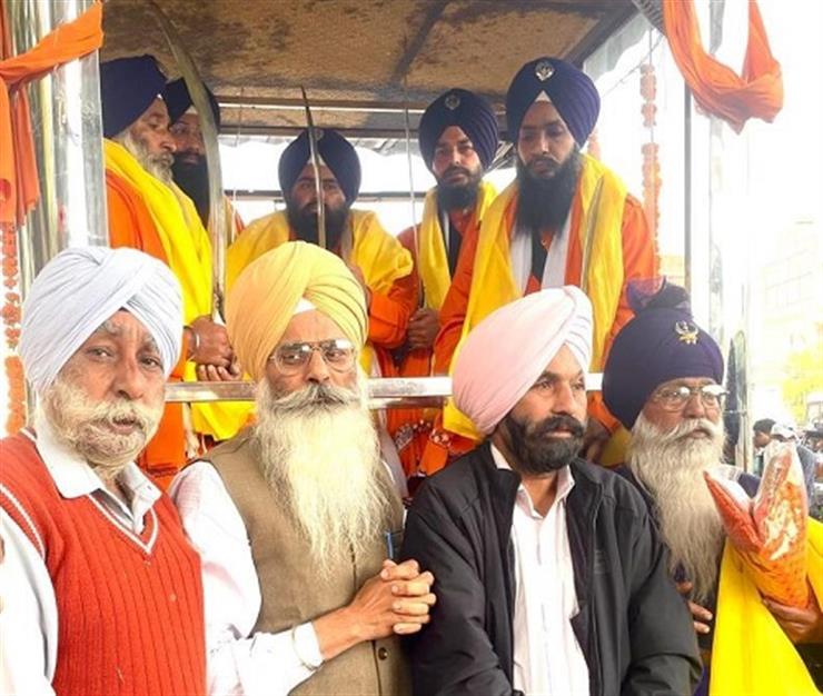 ਅੰਮ੍ਰਿਤਸਰ- ਸ੍ਰੀ ਗੁਰੂ ਤੇਗ਼ ਬਹਾਦਰ ਜੀ, ਭਾਈ ਮਤੀ ਦਾਸ ਜੀ, ਭਾਈ ਸਤੀ ਦਾਸ ਜੀ, ਭਾਈ ਦਇਆਲਾ ਜੀ ਦੇ 350 ਸਾਲਾ ਸ਼ਹੀਦੀ ਦਿਹਾੜੇ ਨੂੰ ਸਮਰਪਿਤ ਗੁਰਦੁਆਰਾ ਧੋਬੜੀ ਸਾਹਿਬ ਅਸਾਮ ਤੋਂ ਅਰੰਭ ਹੋਏ ਮਹਾਨ ਨਗਰ ਕੀਰਤਨ ਦਾ ਨਿਹੰਗ ਸਿੰਘਾਂ ਦੀ ਸਿਰਮੋਰ ਸੰਸਥਾ ਸ਼੍ਰੋਮਣੀ ਪੰਥ ਅਕਾਲੀ ਬੁੱਢਾ ਦਲ ਪੰਜਵਾਂ ਤਖਤ ਦੇ 14ਵੇਂ ਮੁਖੀ ਸ਼੍ਰੋਮਣੀ ਸੇਵਾ ਰਤਨ, ਸ਼੍ਰੋਮਣੀ ਪੰਥ ਰਤਨ ਸਿੰਘ ਸਾਹਿਬ ਜਥੇਦਾਰ ਬਾਬਾ ਬਲਬੀਰ ਸਿੰਘ ਅਕਾਲੀ 96 ਕਰੋੜੀ ਦੇ ਦਿਸ਼ਾ ਨਿਰਦੇਸ਼ਾਂ ਅਨੁਸਾਰ ਗੁਰਦੁਆਰਾ ਬੁਰਜ ਅਕਾਲੀ ਬਾਬਾ ਫੂਲਾ ਸਿੰਘ ਜੀ ਛਾਉਣੀ ਨਿਹੰਗ ਸਿੰਘ ਬੁੱਢਾ ਦਲ ਵੱਲੋਂ ਖਾਲਸਾਈ ਰਵਾਇਤ ਮੁਤਾਬਕ ਭਰਵਾ ਤੇ ਨਿੱਘਾ ਸਵਾਗਤ ਕੀਤਾ ਗਿਆ। ਇਸ ਮੌਕੇ ਗੁਰਦੁਆਰਾ ਸਾਹਿਬ ਦੇ ਪ੍ਰਬੰਧਕ ਬਾਬਾ ਭਗਤ ਸਿੰਘ, ਸ. ਪਰਮਜੀਤ ਸਿੰਘ ਬਾਜਵਾ ਨੇ ਪੰਜ ਪਿਆਰਿਆਂ ਨੂੰ ਗੁਰੂ ਗ੍ਰੰਥ ਸਾਹਿਬ ਜੀ ਦੀ ਹਾਜਰੀ ਵਿੱਚ ਸਿਰਪਾਓ ਭੇਟ ਕੀਤਾ ਅਤੇ ਸ੍ਰੀ ਗੁਰੂ ਗ੍ਰੰਥ ਸਾਹਿਬ ਜੀ ਨੂੰ ਰੁਮਾਲਾ ਸਾਹਿਬ ਭੇਟ ਕੀਤੇ ਗਏ।