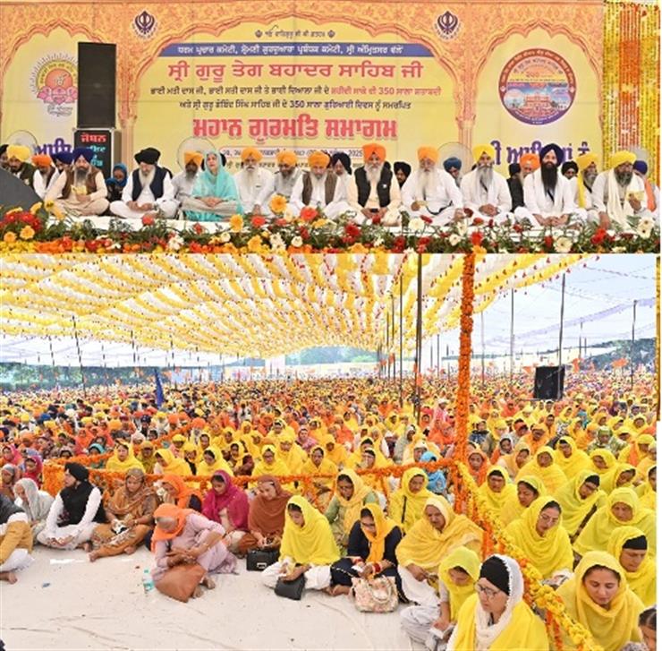ਅੰਮ੍ਰਿਤਸਰ-ਨੌਵੇਂ ਪਾਤਸ਼ਾਹ ਸ੍ਰੀ ਗੁਰੂ ਤੇਗ ਬਹਾਦਰ ਜੀ ਦੀ 350 ਸਾਲਾ ਸ਼ਹੀਦੀ ਸ਼ਤਾਬਦੀ ਸਬੰਧੀ ਸ਼੍ਰੋਮਣੀ ਗੁਰਦੁਆਰਾ ਪ੍ਰਬੰਧਕ ਕਮੇਟੀ ਵੱਲੋਂ ਗੁਰਦੁਆਰਾ ਸਾਹਿਬ ਪਾਤਸ਼ਾਹੀ ਨੌਵੀਂ ਬਾਬਾ ਬਕਾਲਾ ਸਾਹਿਬ ਵਿਖੇ ਕਰਵਾਏ ਗਏ ਵਿਸ਼ਾਲ ਗੁਰਮਤਿ ਸਮਾਗਮ ਚ ਸ਼੍ਰੋਮਣੀ ਕਮੇਟੀ ਪ੍ਰਧਾਨ ਐਡਵੋਕੇਟ ਹਰਜਿੰਦਰ ਸਿੰਘ ਧਾਮੀ, ਸੱਚਖੰਡ ਸ੍ਰੀ ਹਰਿਮੰਦਰ ਸਾਹਿਬ ਦੇ ਗ੍ਰੰਥੀ ਸਿੰਘ ਸਾਹਿਬ ਗਿਆਨੀ ਪਰਵਿੰਦਰਪਾਲ ਸਿੰਘ, ਮਿਸਲ ਸ਼ਹੀਦਾਂ ਤਰਨਾ ਦਲ ਦੇ ਮੁੱਖੀ ਬਾਬਾ ਜੋਗਾ ਸਿੰਘ ਸਮੇਤ ਪ੍ਰਮੁੱਖ ਸਖਸ਼ੀਅਤਾਂ ਅਤੇ ਵੱਡੀ ਗਿਣਤੀ ਸੰਗਤਾਂ ਨੇ ਹਾਜ਼ਰੀ ਭਰੀ। ਗੁਰਦੁਆਰਾ ਸਾਹਿਬ ਵਿਖੇ ਸ੍ਰੀ ਅਖੰਡ ਪਾਠ ਸਾਹਿਬ ਦੇ ਭੋਗ ਉਪਰੰਤ ਖੁੱਲੇ ਪੰਡਾਲ ਵਿੱਚ ਸਜੇ ਧਾਰਮਿਕ ਦੀਵਾਨ ਦੌਰਾਨ ਸ਼ਤਾਬਦੀ ਨੂੰ ਸਮਰਪਿਤ ਧਰਮ ਪ੍ਰਚਾਰ ਕਮੇਟੀ ਅਤੇ ਆਸਟ੍ਰੇਲੀਆ ਦੀ ਸਹਿਜ ਪਾਠ ਸੇਵਾ ਸੰਸਥਾ ਵੱਲੋਂ ਸੰਗਤ ਦੇ ਸਹਿਯੋਗ ਨਾਲ ਦੇਸ਼ ਦੁਨੀਆ ਅੰਦਰ ਆਰੰਭ ਕਰਵਾਏ ਗਏ 25 ਹਜ਼ਾਰ ਦੇ ਕਰੀਬ ਸਾਹਿਜ ਪਾਠਾਂ ਦੇ ਭੋਗ ਪਾਏ ਗਏ। ਇਸ ਮੌਕੇ ਵੱਡੀ ਗਿਣਤੀ ਵਿੱਚ ਸੰਗਤ ਨੇ ਸ਼ਮੂਲੀਅਤ ਕਰਕੇ ਪਾਵਨ ਗੁਰਬਾਣੀ ਦੇ ਪਾਠ ਕੀਤੇ ਤੇ ਗੁਰੂ ਸਾਹਿਬਾਨ ਪ੍ਰਤੀ ਸ਼ਰਧਾ ਤੇ ਸਤਿਕਾਰ ਭੇਟ ਕੀਤਾ। ਸਮਾਗਮ ਦੌਰਾਨ ਰਾਗੀ, ਪ੍ਰਚਾਰਕ, ਢਾਡੀ ਤੇ ਕਵੀਸ਼ਰ ਜਥਿਆਂ ਨੇ ਵੀ ਸੰਗਤਾਂ ਨਾਲ ਗੁਰ ਇਤਿਹਾਸ ਦੀ ਸਾਂਝ ਪਾਈ।