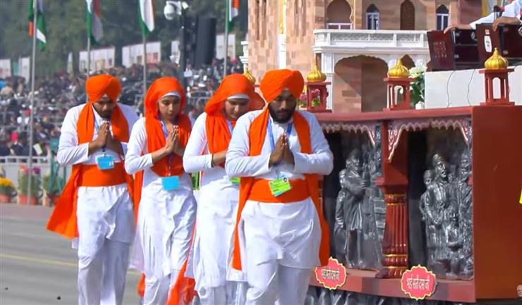 ਚੰਡੀਗੜ੍ਹ- ਗਣਤੰਤਰ ਦਿਵਸ ਮੌਕੇ ਕਰਤੱਵਿਆ ਪੱਥ 'ਤੇ ਪੰਜਾਬ ਦੀ ਝਾਕੀ ਰਾਹੀਂ ਪੇਸ਼ ਸ੍ਰੀ ਗੁਰੂ ਤੇਗ਼ ਬਹਾਦਰ ਸਾਹਿਬ ਜੀ ਦੀ ਲਾਸਾਨੀ ਸ਼ਹਾਦਤ ਨੂੰ ਪੇਸ਼ ਕੀਤਾ ਗਿਆ ਜਿਸ ਨੂੰ ਸਭ ਨੇ ਸ਼ਰਧਾਂਜਲੀ ਦਿੱਤੀ, ਇਸ ਝਾਂਕੀ ਨੇ ਆਪਣੇ ਵੱਲ ਧਿਆਨ ਖਿੱਚਦਿਆਂ ਸਮੁੱਚੇ ਦੇਸ਼ ਨੂੰ ਮਾਨਵਤਾ, ਨਿਆਂ ਅਤੇ ਧਰਮ ਦੀ ਰਾਖੀ ਦੇ ਸੰਦੇਸ਼ ਦਿੱਤਾ।