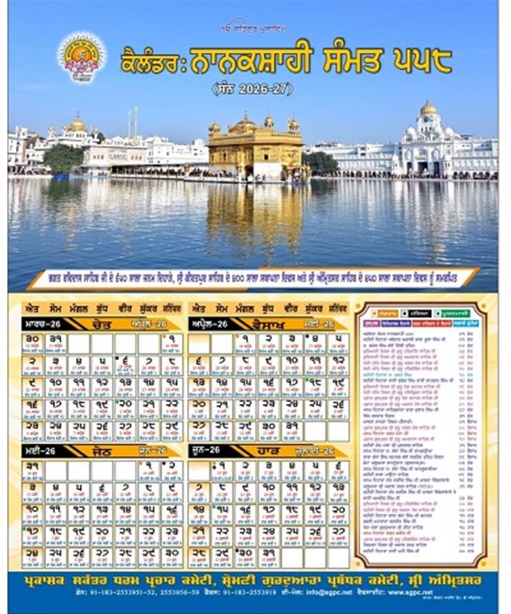 ਅੰਮ੍ਰਿਤਸਰ -ਸ਼ੋ੍ਰਮਣੀ ਕਮੇਟੀ ਵਲੋ ਤਿਆਰ ਅਤੇ ਸ੍ਰੀ ਅਕਾਲ ਤਖ਼ਤ ਸਾਹਿਬ ਤੋ ਜਾਰੀ ਨਵੇ ਨਾਨਕਸ਼ਾਹੀ ਸਾਲ 558 ਦਾ ਕੈਲੰਡਰ ਚਰਚਾ ਦਾ ਵਿਸ਼ਾ ਬਣ ਰਿਹਾ ਹੈ। ਕੈਲੰਡਰ ਵਿਚ ਇਸ ਵਾਰ ਮਲ ਮਾਸ (ਵਾਧੂ ਮਹੀਨਾ) ਆ ਜਾਣ ਕਾਰਨ ਨਾਨਕਸ਼ਾਹੀ ਸਾਲ 558 ਦੇ ਕੈਲੰਡਰ ਵਜੋ ਪ੍ਰਚਾਰਿਆ ਜਾ ਰਿਹਾ ਕੈਲੰਡਰ ਵਿਚ 12 ਦੀ ਬਜਾਏ 13 ਮਹੀਨੇ ਦਾ ਕੈਲੰਡਰ ਬਣ ਗਿਆ ਹੈ। ਮਲ ਮਾਸ ਆ ਜਾਣ ਕਾਰਨ ਜੇਠ ਦਾ ਮਹੀਨਾ ਵੀ 64 ਦਿਨ ਦਾ ਦਿਖਾਇਆ ਗਿਆ ਹੈ।ਸ੍ਰੀ ਗੁਰੂ ਅਰਜਨ ਸਾਹਿਬ ਦਾ ਸ਼ਹੀਦੀ ਦਿਹਾੜਾ ਜੋ ਕਿ ਚੰਦਰਮਾਂ ਕੈਲੰਡਰ ਅਨੁਸਾਰ ਜੇਠ ਸੁਦੀ ਚੌਥ ਨੂੰ ਮਨਾਇਆ ਜਾਂਦਾ ਹੈ । ਇਸ ਵਾਰ ਦੋ ਵਾਰੀ ਜੇਠ ਸੁਦੀ ਚੌਥ 20 ਮਈ ਤੇ 18 ਜੂਨ ਨੂੰ ਆਈ ਹੈ। ਵਿਦਵਾਨਾਂ ਨੇ ਰਾਏ ਕਰਕੇ 18 ਜੂਨ ਨੂੰ ਸ੍ਰੀ ਗੁਰੂ ਅਰਜਨ ਸਾਹਿਬ ਦਾ ਸ਼ਹੀਦੀ ਦਿਨ ਤਹਿ ਕੀਤਾ ਹੈ।ਇਸ ਕੈਲੰਡਰ ਨੂੰ ਤਿਆਰ ਕਰਨ ਲਈ ਸ਼ੋ੍ਰਮਣੀ ਕਮੇਟੀ ਪ੍ਰਧਾਨ ਐਡਵੋਕੇਟ ਹਰਜਿੰਦਰ ਸਿੰਘ ਧਾਮੀ ਨੇ ਇਕ ਸਬ ਕਮੇਟੀ ਦਾ ਗਠਨ ਕੀਤਾ ਸੀ ਜਿਸ ਵਿਚ ਸ਼ੋ੍ਰਮਣੀ ਕਮੇਟੀ ਮੈਂਬਰ ਸ੍ਰ ਅਮਰਜੀਤ ਸਿੰਘ ਚਾਵਲਾ, ਧਰਮ ਪ੍ਰਚਾਰ ਕਮੇਟੀ ਦੇ ਮੈਂਬਰ ਭਾਈ ਅਜੈਬ ਸਿੰਘ ਅਭਿਆਸੀ, ਭਾਈ ਅਵਤਾਰ ਸਿੰਘ ਵਣਵਾਲਾ, ਭਾਈ ਸੁਖਵਰਸ਼ ਸਿੰਘ ਪਨੂੰ ਨੂੰ ਸ਼ਾਮਲ ਕੀਤਾ ਗਿਆ ਸੀ। ਸਿੱਖ ਇਤਿਹਾਸ ਰਿਸਰਚ ਬੋਰਡ ਦੇ ਸ੍ਰ ਰਾਜਵਿੰਦਰ ਸਿੰਘ ਜੋਗਾ ਨੂੰ ਇਸ ਕੈਲੰਡਰ ਕਮੇਟੀ ਦਾ ਕੋਆਰਡੀਨੇਟਰ ਨਿਯੁਕਤ ਕੀਤਾ ਗਿਆ ਸੀ। ਕੈਲੰਡਰ ਬਾਰੇ ਗਲ ਕਰਦਿਆਂ ਰਾਜਵਿੰਦਰ ਸਿੰਘ ਜੋਗਾ ਨੇ ਦਸਿਆ ਕਿ ਇਸ ਬਾਰੇ ਮਾਹਿਰਾ ਦੀ ਰਾਏ ਲੈ ਕੇ ਹੀ ਕੈਲੰਡਰ ਤਿਆਰ ਕੀਤਾ ਗਿਆ ਹੈ। ਕੈਲੰਡਰ ਜਾਰੀ ਕਰਨ ਤੋ ਪਹਿਲਾਂ ਅਸੀ ਸ੍ਰੀ ਗੁਰੂ ਗ੍ਰੰਥ ਸਾਹਿਬ ਯੂਨੀਵਰਸਿਟੀ ਦੇ ਵਾਇਸ ਚਾਂਸਲਰ ਦੇ ਨਾਲ ਨਾਲ ਕੈਲੰਡਰ ਮਾਹਿਰਾਂ ਲੰਮੀਆਂ ਚਰਚਾਵਾਂ ਵੀ ਹੋਈਆਂ। ਕੈਲੰਡਰ ਕਮੇਟੀ ਦੇ ਮੈਂਬਰ ਭਾਈ ਅਜੈਬ ਸਿੰਘ ਅਭਿਆਸੀ ਨੇ ਕਿਹਾ ਕਿ ਕੈਲੰਡਰ ਨੂੰ ਲੈ ਕੇ ਕਿਸੇ ਕਿਸਮ ਦਾ ਵਿਵਾਦ ਨਹੀ ਹੈ। ਪਿਛਲੇ ਸਾਲ ਤੋ ਅਸੀ ਕੈਲੰਡਰ ਵਿਚ ਵਦੀ ਸੁਦੀ ਸ਼ਾਮਲ ਕੀਤੀ ਸੀ ਜਿਸ ਤੋ ਬਾਅਦ ਕੈਲੰਡਰ ਚਰਚਾ ਦਾ ਵਿਸ਼ਾ ਬਣਿਆ ਹੈ। ਅਸੀ ਕੈਲੰਡਰ ਦਾ ਖਰੜਾ ਤਿਆਰ ਕਰਕੇ ਪ੍ਰਧਾਨ ਸ਼ੋ੍ਰਮਣੀ ਕਮੇਟੀ ਤੇ ਜਥੇਦਾਰ ਸ੍ਰੀ ਅਕਾਲ ਤਖ਼ਤ ਸਾਹਿਬ ਵਲ ਭੇਜਿਆ ਸੀ ਤੇ ਜਥੇਦਾਰ ਨੇ ਜੋ ਫਾਇਨਲ ਕੀਤਾ ਅਸੀ ਉਸ ਨੂੰ ਮੰਨ ਕੇ ਇਹ ਕੈਲੰਡਰ ਜਾਰੀ ਕੀਤਾ।ਦਸਣਯੋਗ ਹੈ ਕਿ ਕੈਲੰਡਰ ਦੇ ਜਾਣਕਾਰਾਂ ਮੁਤਾਬਿਕ ਸਿੱਖ ਕੈਲੰਡਰ ਚੰਦਰਮਾਂ, ਸੂਰਜੀ ਤੇ ਈਸਵੀ ਦੇ ਅਧਾਰ ਤੇ ਚਲਦਾ ਹੈ।ਇਸ ਵਿਚ ਗੁਰੂ ਸਾਹਿਬਾਨ ਦੇ ਨਾਲ ਸੰਬਧਤ ਦਿਹਾੜੇ ਜਿੰਨਾ; ਵਿਚ ਪ੍ਰਕਾਸ਼ ਪੁਰਬ, ਗੁਰਤਾਗੱਦੀ ਪੁਰਬ ਅਤੇ ਜ਼ੋਤੀ ਜ਼ੋਤਿ ਦਿਹਾੜਾ ਚੰਦਰਮਾਂ ਕੈਲੰਡਰ ਅਨੁਸਾਰ, ਗੁਰੂ ਪ੍ਰਵਾਰਾਂ ਦੇ ਜਨਮ ਦਿਹਾੜੇ ਤੇ ਸਚਖੰਡ ਪਿਆਣਾ ਦਿਹਾੜਾ ਸੂਰਜੀ ਕੈਲੰਡਰ ਮੁਤਾਬਿਕ ਮੰਨੇ ਜਾਂਦੇ ਹਨ। ਇਸੇ ਤਰਾਂ ਨਾਲ ਸਿੱਖ ਸ਼ਹੀਦਾਂ ਤੇ ਹੋਰ ਸਾਕਿਆ ਤੇ ਮੋਰਚਿਆਂ ਨਾਲ ਸਬੰਧਤ ਦਿਹਾੜੇ ਈਸਵੀ ਕੈਲੰਡਰ ਮੁਤਾਬਿਕ ਤਹਿ ਕੀਤੇ ਜਾਂਦੇ ਹਨ।